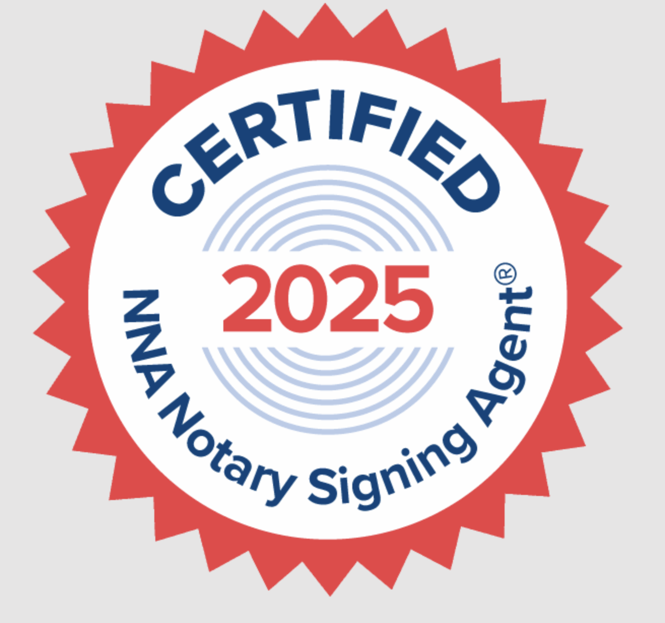 Certified by National Notary Association. I can provide real estate document signing, ID verification and notarization, document review for completeness, and courier or scan-back services.